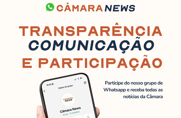 Muito mais do que um grupo de WhatsApp, o Câmara News é a sua nova janela para o Legislativo. É a nossa forma de garantir que a informação chegue até você com clareza e emoção. Através dele, a comunidade gramadense receberá, em primeira mão, notícias sobre os projetos de lei que impactam o nosso dia a dia, convites para audiências públicas, as belas ações da Escola do Legislativo, debates importantes das sessões e tudo o que faz da nossa Casa, a sua Casa.