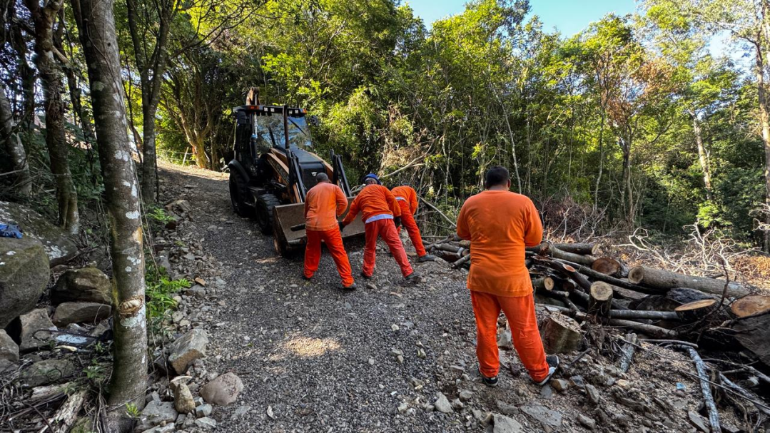 A Prefeitura de Gramado iniciou nesta sexta-feira (23) a limpeza do terreno onde será construído o campus do Instituto Federal do Rio Grande do Sul (IF-RS) no município. O trabalho está sendo realizado pela Secretaria de Obras, com o apoio dos apenados do Presídio Estadual de Canela, que auxiliam na remoção da vegetação e na organização da área.