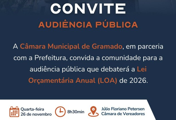 Home NotíciasCâmara Municipal de GramadoCâmara debate LOA 2026 em audiência pública nesta quarta-feira