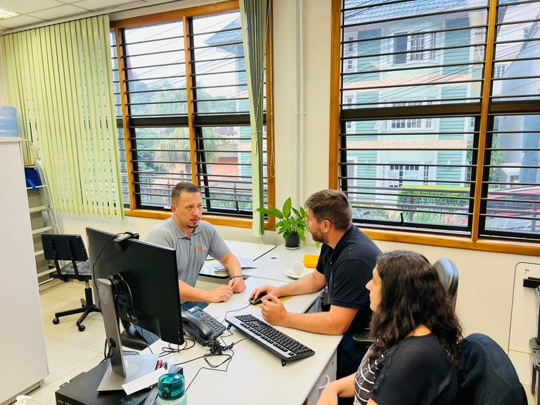 Na tarde de ontem (24), o diretor da Escola do Legislativo, Fábio Schmatz, reuniu-se com a técnica judiciária Leila Della Casa e com o chefe do Cartório da 65ª Zona Eleitoral, Guilherme Piovesan Cavagnoli, para formalizar o empréstimo das 18 urnas eletrônicas que serão utilizadas na eleição dos representantes de cada escola.