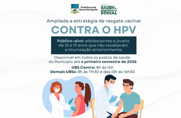O Ministério da Saúde, por meio da Secretaria de Vigilância em Saúde e Ambiente (SVSA), do Departamento do Programa Nacional de Imunizações (DPNI) e da Coordenação-Geral de Incorporação Científica e Imunização (CGICI), informa a ampliação do período de realização da estratégia de resgate vacinal de adolescentes e jovens de 15 a 19 anos não vacinados contra o Papilomavírus Humano (HPV). A vigência da estratégia será estendida até o primeiro semestre de 2026.