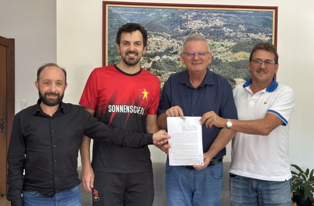 O prefeito Daniel Carlos Michaelsen assinou, na tarde de quarta-feira, 1º de abril, o repasse de R$ 10.000,00 para a Associação de Danças Folclóricas Sonnenschein, das localidades de Linha Brasil e Linha Araripe. O ato, realizado no Gabinete Oficial com a presença do presidente da entidade, Henrique Seefeld, formaliza a entrega do recurso destinado por meio de emenda impositiva do vereador Jorge Luiz Lüdke.