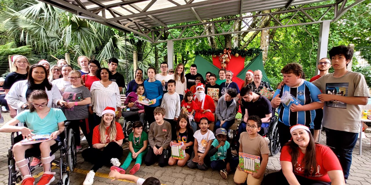 Realizado na sede da APAE, o evento proporcionou uma tarde especial para mais de 40 usuários da instituição e suas famílias, reforçando a importância da troca de afeto e do olhar atento às pessoas únicas e especiais atendidas pela associação. A programação contou com brincadeiras lúdicas, caça aos doces, lanche especial e a distribuição de sucos e refrigerantes, viabilizada pela parceria com a Fruki Bebidas.O momento mais aguardado da tarde foi a chegada do Papai Noel, que, com carinho e atenção, realizou a entrega individualizada de cerca de 80 presentes, entre brinquedos e doces, garantindo sorrisos e emoção para todos os participantes.