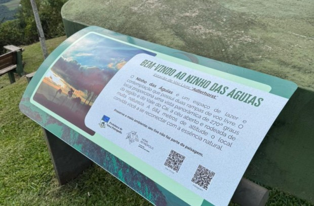 A Prefeitura de Nova Petrópolis realizou uma série de melhorias na estrutura de um dos principais atrativos turísticos do Município, o Ninho das Águias, com destaque para a substituição da adesivagem das placas informativas e a realização completa da poda na encosta, proporcionando uma vista ainda mais ampla e valorizada da paisagem. A ação também contribui diretamente para melhores condições de segurança e prática para os profissionais do voo livre.