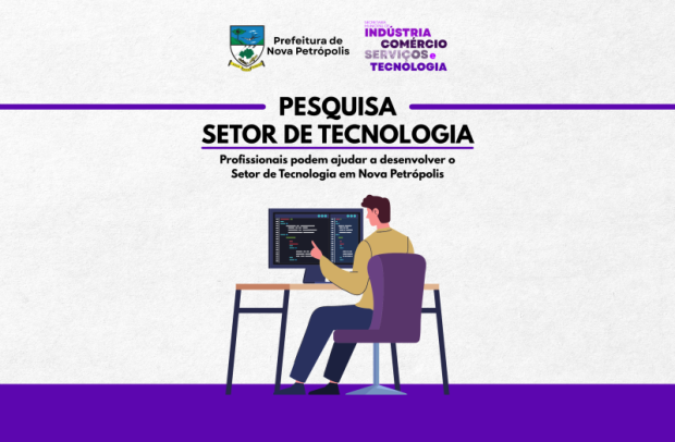 A Secretaria de Indústria, Comércio, Serviços e Tecnologia de Nova Petrópolis está realizando uma pesquisa para identificar os profissionais de tecnologia do Município, com o objetivo de criar políticas públicas assertivas, atraindo investimentos e viabilizando espaços de inovação, como Hubs e Espaços de Coworking.