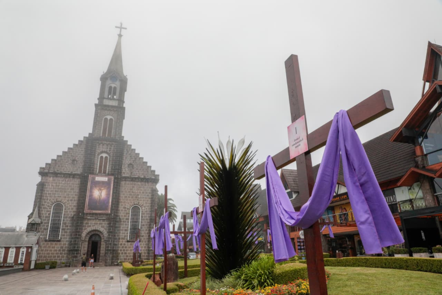 A Igreja Matriz São Pedro ganhou uma decoração especial para marcar o período da Quaresma, integrando a programação do Gramado Aleluia. Em parceria com a Paróquia São Pedro, a ação foi realizada pela Gramadotur, responsável pela organização dos eventos públicos do município.