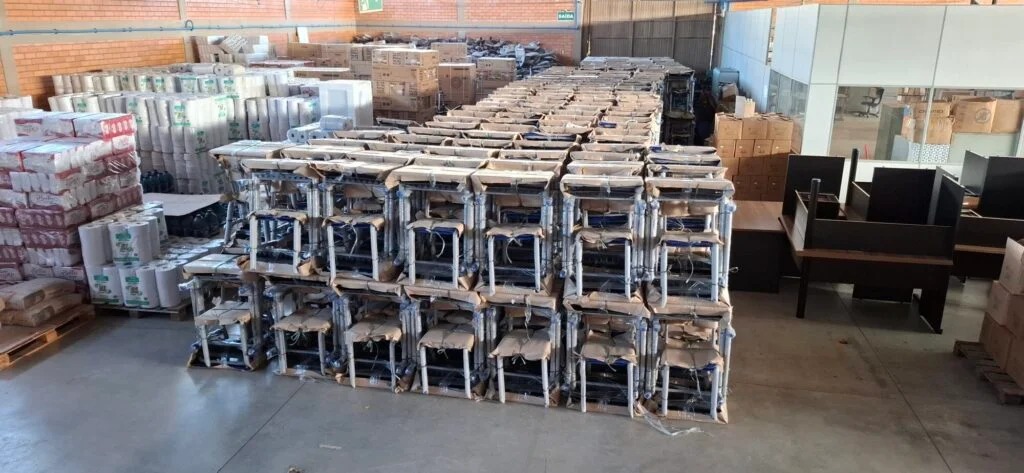 Foram adquiridos 630 conjuntos de classes e cadeiras para uso dos alunos da educação infantil e ensino fundamental