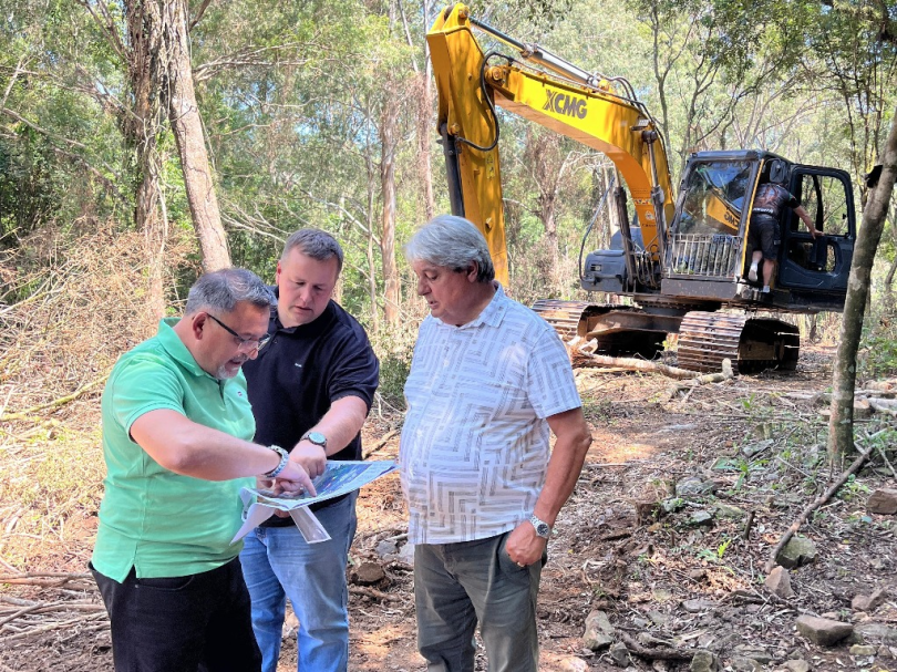 A Prefeitura de Gramado, por meio da Secretaria de Inovação e Desenvolvimento Econômico, em parceria com a Secretaria de Obras e a Subprefeitura da Várzea Grande, iniciou recentemente as obras de preparação do terreno que receberá uma unidade do Instituto Federal de Educação, Ciência e Tecnologia do Rio Grande do Sul (IFSUL). Na quarta-feira (28), o prefeito Nestor Tissot esteve no local para acompanhar os trabalhos, juntamente com o secretário André Castilhos (Inovação) e o subprefeito da Várzea, Carlos Foss.