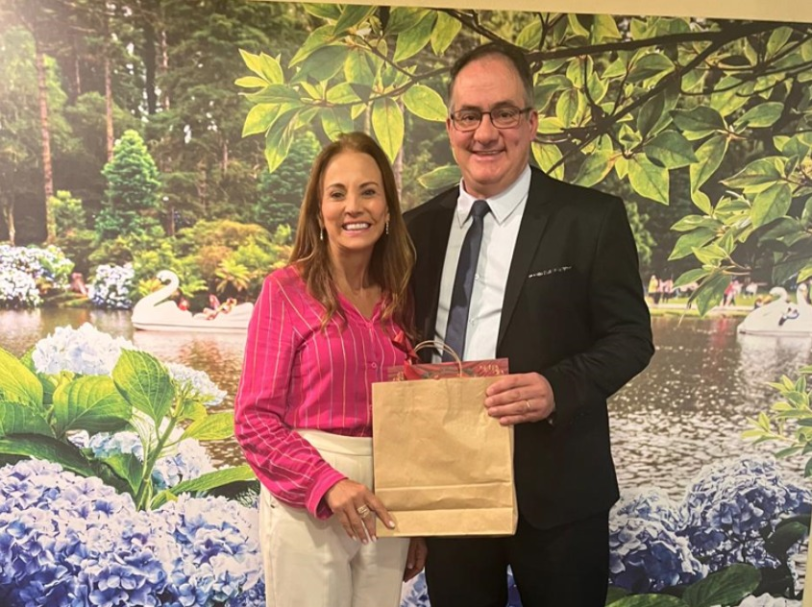 Nesta segunda-feira (5), a presidente da Gramadotur, Rosa Helena Volk, realizou uma visita institucional à Câmara de Vereadores de Gramado para cumprimentar o novo presidente do Legislativo, vereador Neri Nascimento.