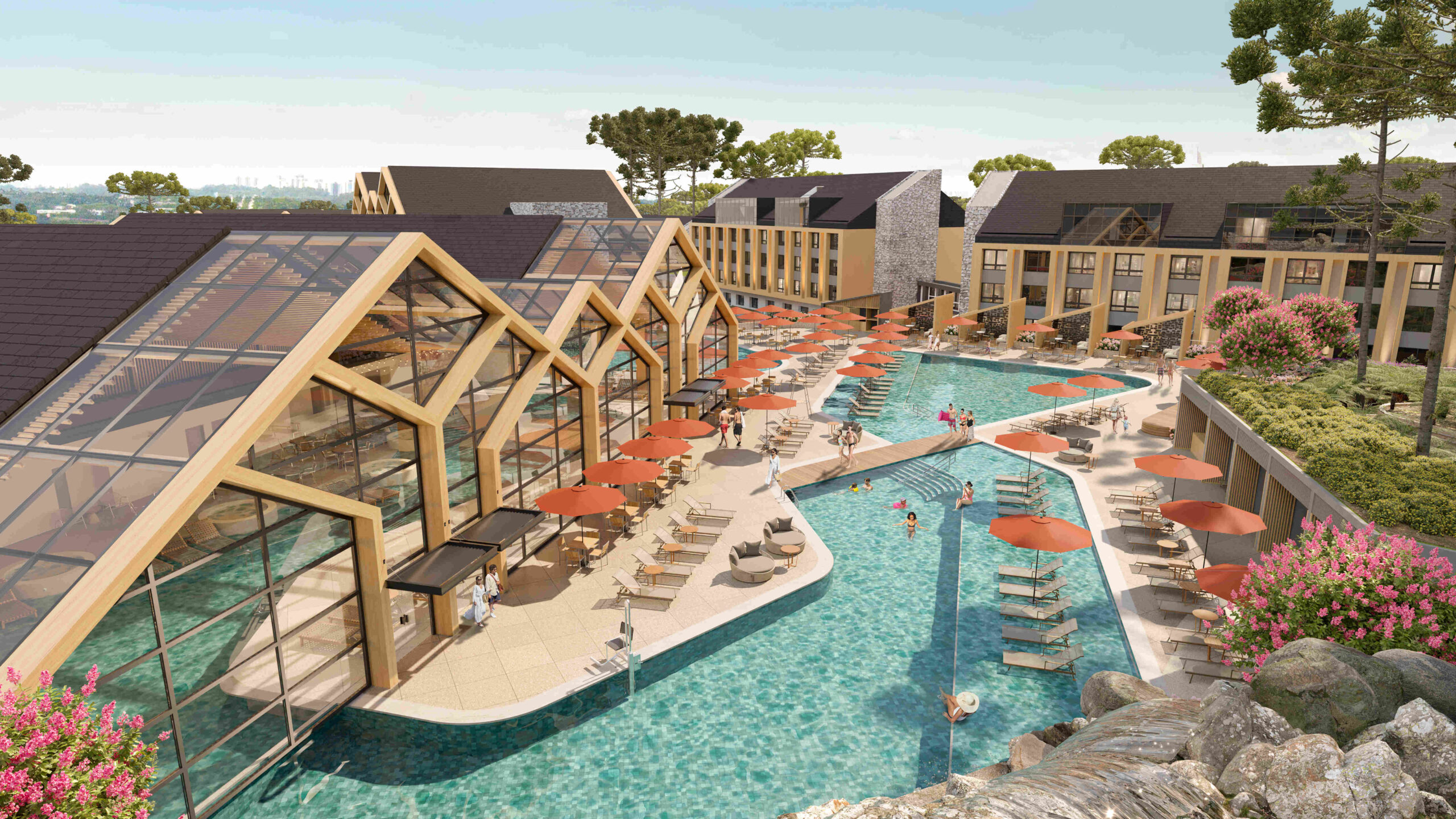 Mais do que um complexo de apartamentos, o empreendimento é uma máquina de experiências projetada para atuar como um hub de atração na Serra Gaúcha: