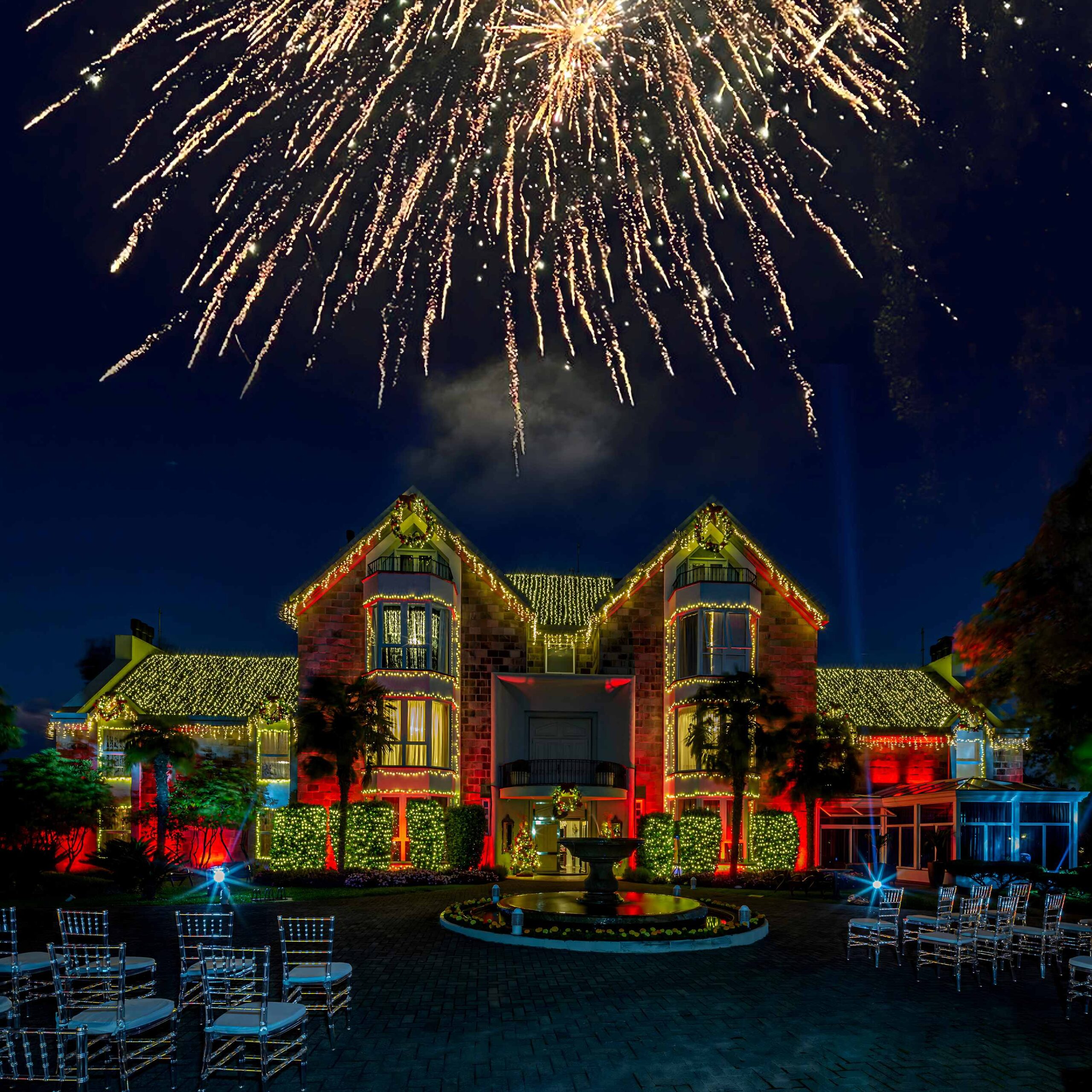 À meia-noite, os convidados acompanham a contagem regressiva com projeção mapeada na fachada do Castelo, seguida pela queima de fogos que ilumina o céu de Gramado. Após a virada, a tradicional lentilha
