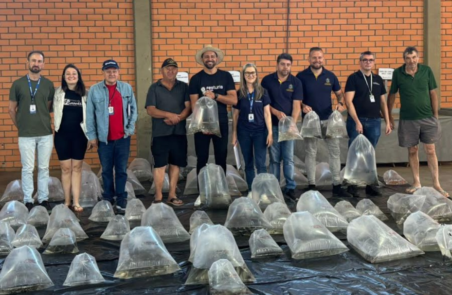 Foram distribuídos cerca de 10 mil alevinos de diferentes espécies, como carpas, jundiás, lambaris, tilápias, entre outros. A extensionista da agência da Emater em Gramado, a engenheira agrônoma Janete Basso e o assistente Técnico Regional da Emater de Caxias do Sul, o médico veterinário João Carlos Santos da Luz, acompanharam a ação. “São espécies que se adaptam facilmente ao clima de Gramado”, ressalta Janete.