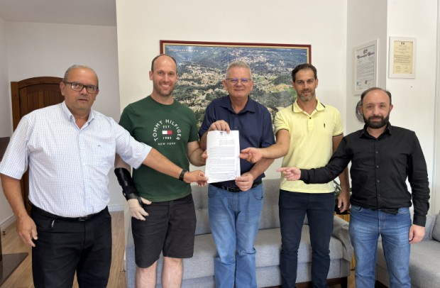 O prefeito Daniel Carlos Michaelsen oficializou, na tarde de quarta-feira, 1º de abril, o repasse de R$ 18.000,00 para a Associação Tannenwald de Tradição Cultural e Folclore Alemão (Volkstanzgruppe Tannenwald). A assinatura do termo de fomento ocorreu no Gabinete Oficial com a presença do presidente da entidade, Matias Knorst, e viabiliza a entrega de recursos provenientes de emendas impositivas indicadas pelos vereadores Maicon Daniel Knaak, no valor de R$ 10.000,00, e João Bombeiro, que destinou R$ 8.000,00.